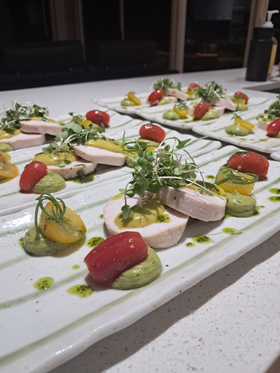 Sous vide poached organic chicken breast, avocado and pickled beetroot, coriander emulsion